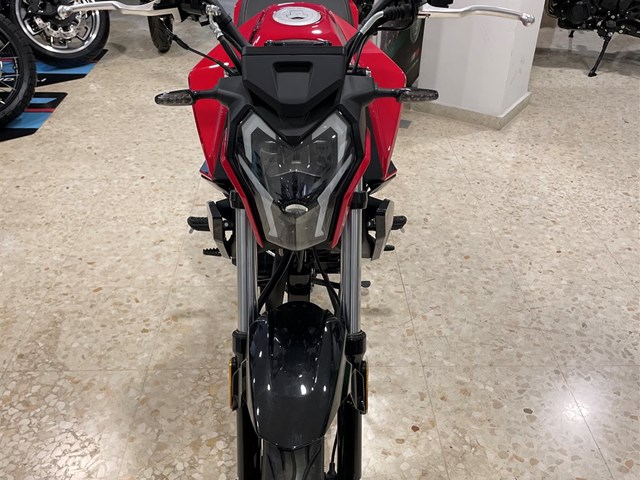 Moto Keeway RKS de estilo naked en color rojo. Ideal para moverse por la ciudad con agilidad si pasas de un scooter. Empieza en el mundo de la moto de verdad y sube y baja de marchas surfeando el tráfico. El precio no incluye la matrícula.