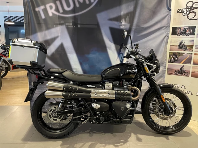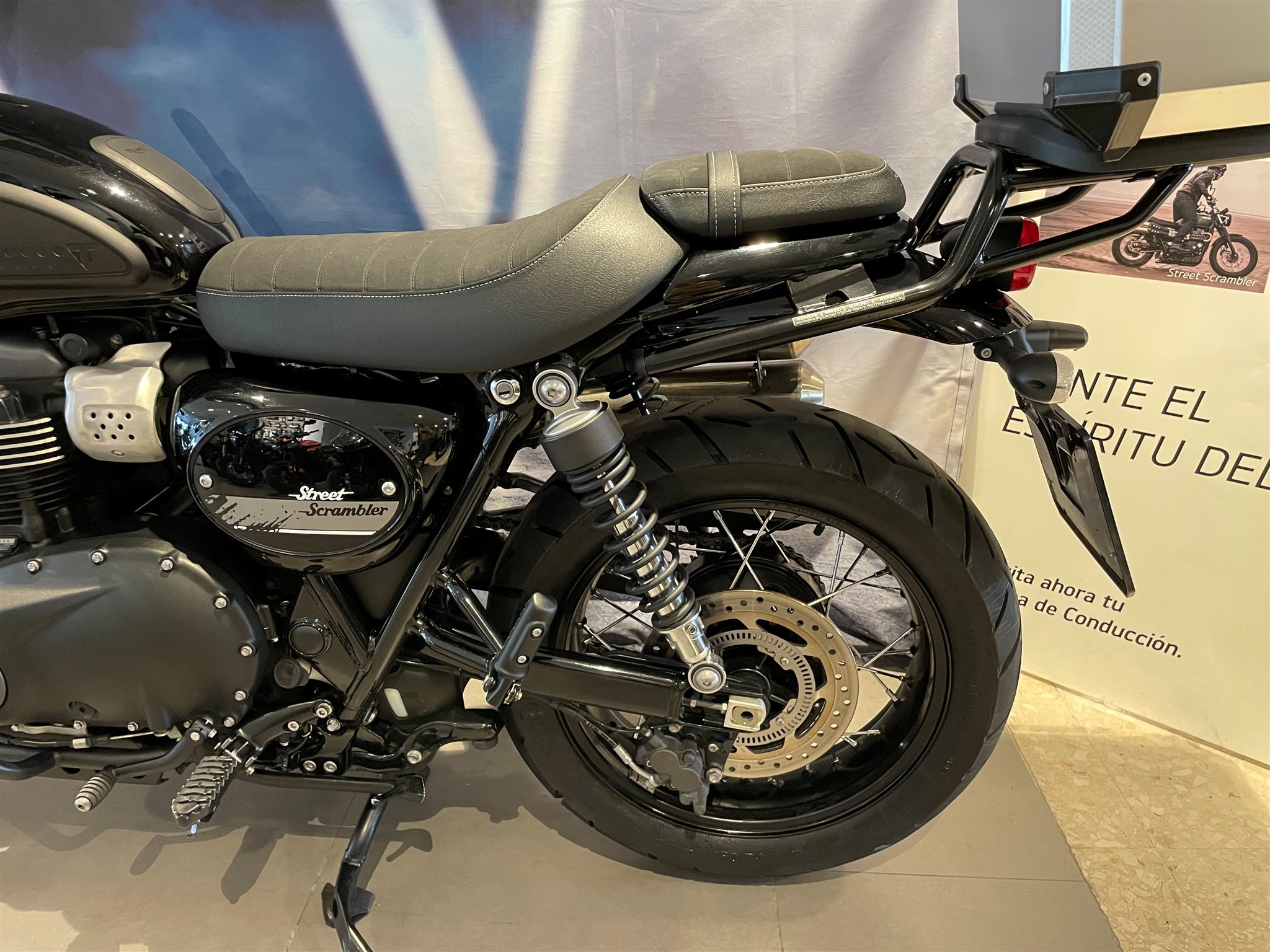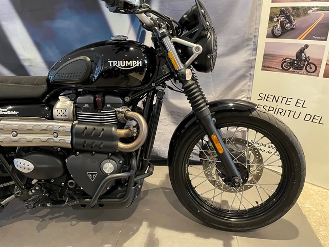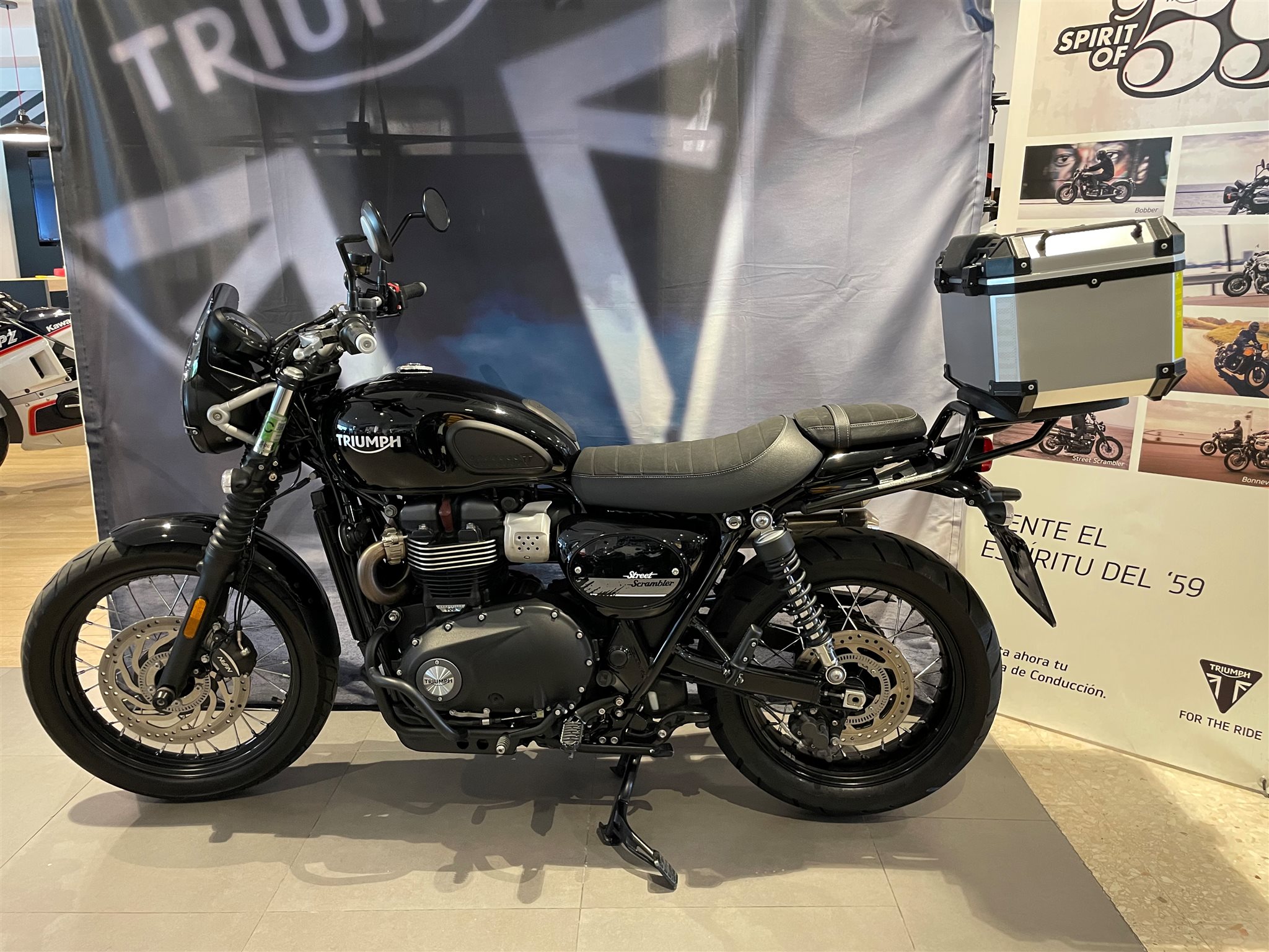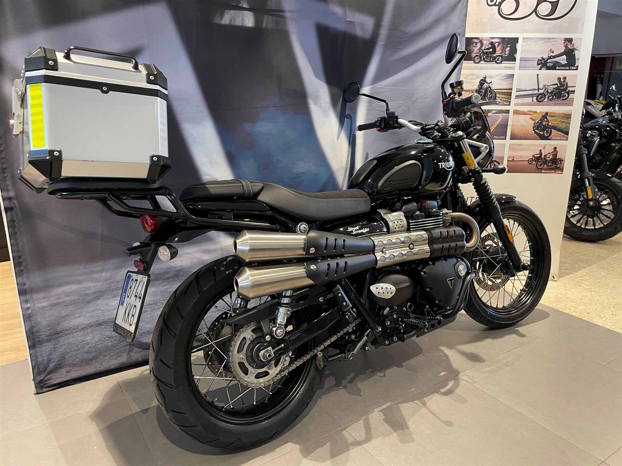 Triumph Street Scrambler 900, motocicleta de ocasión en excelente estado. Matriculada el 16/04/2018 con tan solo 37965 kms. Top case más soporte, caballete, puños calefactados, defensas inferiores, toma de corriente, cupula ... Todo ello valorado en mas de 1400 euros. Recién hecho el mantenimiento. Entregamis factura.
